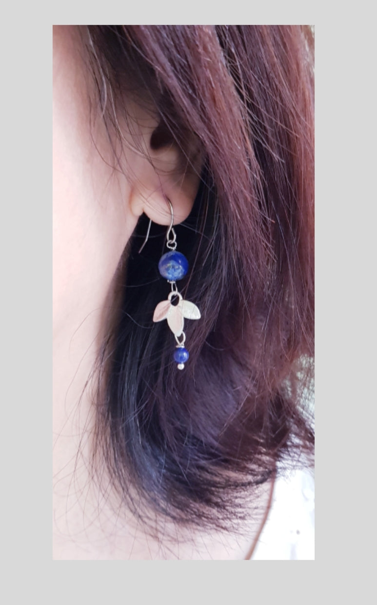 This pair of earrings consists of two earrings that are different in style, yet complement each other.