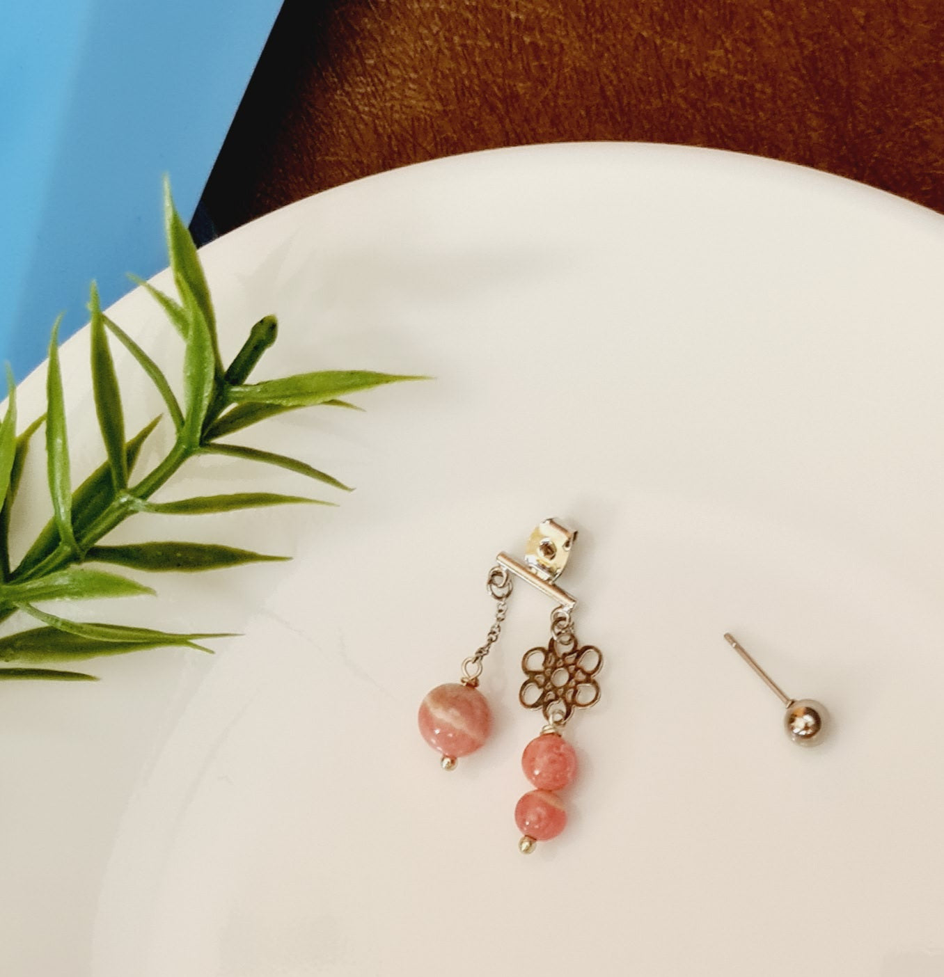 Each earring comes with a stud ( front ) and a earring stopper attached to a dangle or jacket ( back ). This style gives a "behind the ear" dangle rather than a busy dangle in front of the ear, giving a two dimension effect.  The ear stud can also be worn without the back dangle.