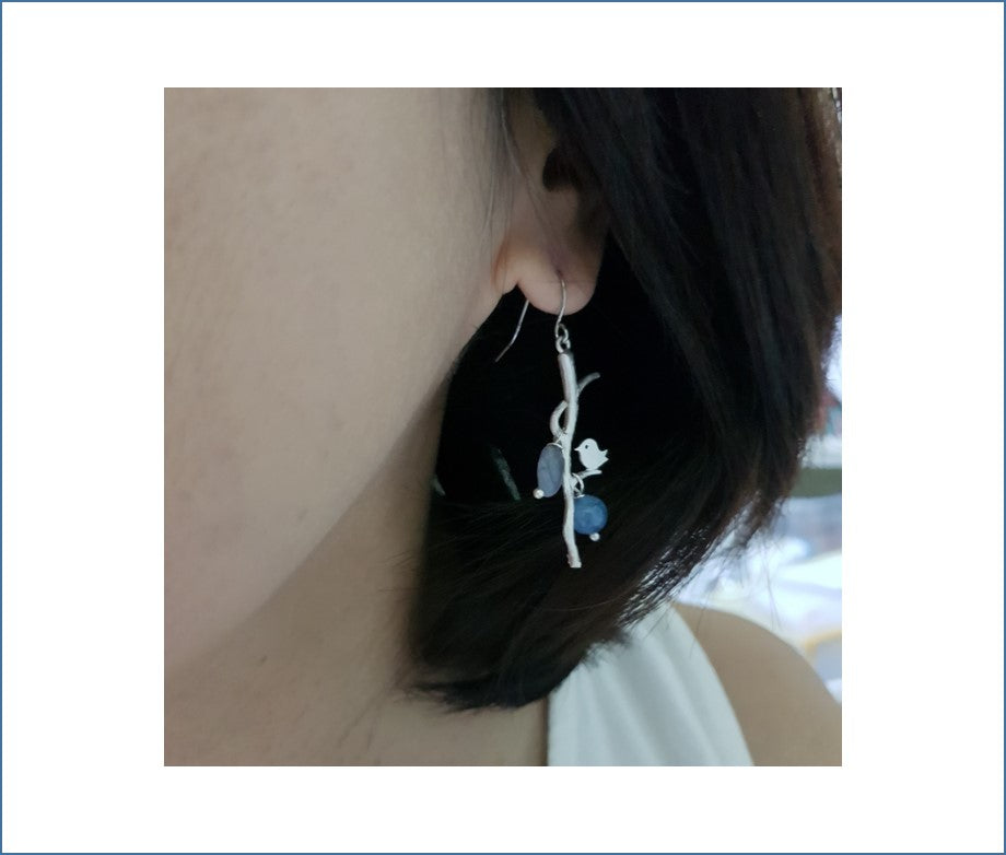 This pair of earrings consists of two earrings that are different in style, yet complement each other.